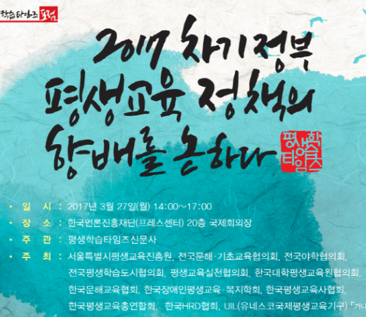 불확실성의 미래로 대변되는 제4차 산업혁명시대에 본격적인 평생학습시대의 도래가 예측된다. 산업 자동화로 인한 일자리 문제와 기술의 변화 주기가 짧아지고 있어 직업 재교육은 개인별 맞춤 교육과 평생학습체제로 급격히 전환해 나가고 있다, 이는 곧 꾸려질 차기 정부 앞에 풀어야 할 난제 중 가장 커다란 이슈다. 대한민국 평생교육계가 한 목소리로 차기 정부의 평생교육 정책...