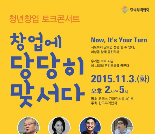 - 아이오앤코 심새나 대표, 에이팀벤처스 고산 대표, 와디즈 최동철 이사 등, 스타트업의 신화를 이룬 유명 강사들의 강연과 케이팝 스타의 공연 한국무역협회(회장 김인호)가 취업난에 시달리고 있는 청년들을 위해 ‘청년창업 토크콘서트’를 개최한다. 오는 11월 3일 오후 2시부터 5시까지 서울 강남의 코엑스 컨퍼런스룸에서 열리는 ‘청년창업 토크콘서트’는 창업은 물론, 취업 및 향후 진로에 대해 고민하는...