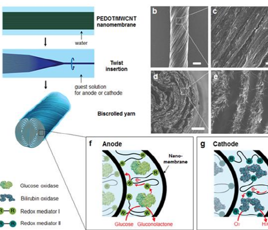 국내 연구진이 탄소나노튜브에 생체효소를 넣어 유연하면서도 강한 섬유형태의 고성능 생체연료전지를 개발했다.포도당을 산화시킬 때 생성되는 전자를 전극으로 수집해 전력을 만드는 생체연료전지는 상온에서 구동할 수 있고, 친환경적이기 때문에 차세대 에너지 공급장치로 주목받고 있다.한양대 전기생체공학부 김선정 교수팀이 주도한 이번 연구는 미래창조과학부와 한국연구재단이 추진하는 리더연구자지원사업(창의적 연구)의 지원으로 수행되었고, 연구결과는 네이처 커뮤니케이션(Nature Communications)지...