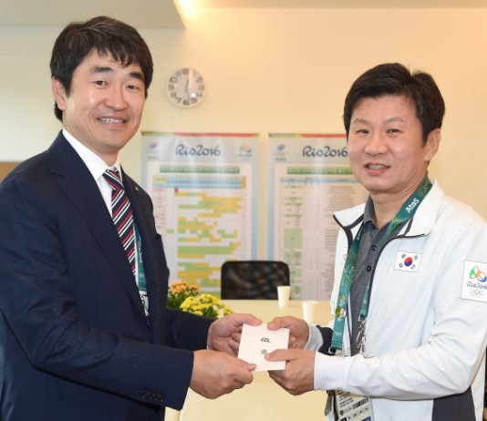 SBS 윤석민 부회장이 ‘2016 리우올림픽’에 출전하는 대한민국 선수단을 격려하기 위해 한국 선수촌을 방문했다. 윤 부회장은 4일(목, 현지시간) 오전 11시에 브라질 리우데자네이루에 위치한 선수촌을 방문해 한국선수단에게 격려금을 전달했다. 이 자리에는 정몽규 한국선수단장과 조영호 대한체육회 사무총장 등 선수단 주요 임원들이 자리했다. 윤 부회장은 “이번 올림픽에서 한국 선수단이 좋은 결과를 얻기 바란다”는 덕담을 건넸고, 정몽규...