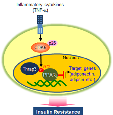 국내 연구진이 당뇨병 유발에 관여하는 유전자를 조절하는 단백질을 발굴해냈다. 향후 당뇨병 치료제 개발을 위한 새로운 표적단백질이 될 수 있을 것으로 기대된다. 울산과학기술대 생명과학과 최장현 교수 연구팀이 수행한 이번 연구는 미래창조과학부가 추진하는 신진연구자지원사업(신진)의 지원으로 수행되었고 연구결과는 생명과학 분야 국제학술지(Genes & Development) 온라인판 10월 14일자에 게재되었다.(논문명 : Thrap3 docks on phosphoserine...