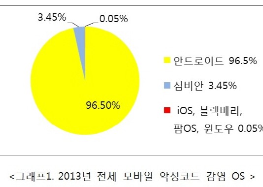 모바일 악성코드 중 안드로이드 악성코드가 압도적으로 많은 것으로 나타났다.포티넷 코리아(www.fortinet.co.kr)이 발간한 ‘2013년 보안 위협 동향 보고서’에서 2013년은 모바일 기기에 대한 악성코드의 활동이 왕성한 한 해였으며, 안드로이드 플랫폼은 전체 모바일 악성코드 감염 OS 중 96.5%를 차지하면서 악성코드 개발자들이 가장 많이 공격대상으로 선택한 플랫폼으로 드러났다.감염된 전체 OS 중...