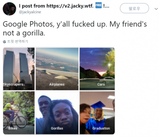얼굴을 인식하는 인공지능(AI)이 피부색이 짙은 사람을 정확히 식별하는 데 어려움이 많다는 것은 이미 알려져 있다. 구글은 2015년 5월 사진의 사물과 얼굴들을 자동으로 분류하여 서비스하는 구글 포토(Google Photos)에 올라온 까만 피부색 여성을 고릴라(Gorillas)로 분류하는 실수를 했다. 페이스북도 마찬가지로 검은색(사람과 원숭이 구별)과 노랑색(빵과 고양이 구별) 등 특정 색을 잘 구분하지 못했다. ▲...