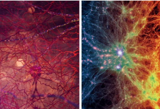 신경 과학자와 천체 물리학자가 인간 두뇌와 우주가 놀랍도록 닮은 유사점을 발견했다. 이탈리아 볼로냐대학 천체 물리학자 프랑코 바자(Franco Vazza)와 베로나대학 신경외과 의사 알베르토 펠레티(Alberto Feletti)는 복잡한 우주 은하 네트워크(우주 웹)와 뇌 신경망 구조를 비교한 결과 엄청난 크기 차이에도 불구하고 서로 비슷한 복잡성과 자기 조직화를 발견했다.연구 결과(논문명: The quantitative comparison between the...
