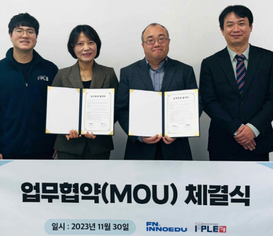 IT교육 전문업체 잇플(대표 정지숙)과 온라인교육 전문업체 에프앤이노에듀(대표 박승원)가 IT 교육 사업에 대한 업무협약을 30일 체결했다.에프앤이노에듀 본사에서 열린 협약식은 IT 교육프로그램 개발과 전국망 교육 강사진을 보유한 IT 교육 전문업체 잇플과 온·오프라인교육, 이러닝 콘텐츠 개발 및 교육 솔루션 서비스 전문업체 에프앤이노에듀는 정보 및 인적·물적 교류 등 유기적인 협력체계를 구축해 IT 온·오프라인...