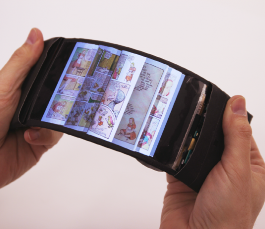 [youtube http://www.youtube.com/watch?v=Sfc_Peev660]18일(현지시간) 비즈니스 인사이더(Business Insider) 등에 따르면 캐나다 퀸즈대학(Queen's University) 휴먼미디어랩(Human Media Lab) 연구팀이 휘어지는 스마트폰을 개발했다. ‘리플렉스(ReFlex)’라는 이름의 이 스마트폰은 안드로이드 4.4 킷캣(KitKat)이 운영체계로 사용되었으며, 액정은 LG디스플레이의 유기발광다이오드(OLED)를 이용되었다. 퀸즈대학 연구팀에 의하면, 휘어지는 스마트폰을 통해 사용자들은 애플리케이션과 게임을 보다 재미있게 즐길 수 있으며, 특히 전자책을 볼 때 스마트폰을 구부리면 책...