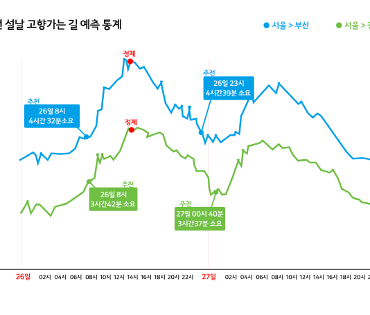 27일부터 시작하는 설 연휴 기간 중 가장 고속도로 정체가 심할 것으로 예상되는 출발 시간대는 26일 오후 1시, 27일 오전 10시, 28일 정오 전후가 될 것으로 보인다. 카카오 모바일 내비게이션 카카오내비가 이번 설 연휴 기간 동안의 고속도로 교통 상황을 예측했다. 2014년부터 지난해 추석까지 3년간의 명절 연휴 내비게이션 이용 데이터를 분석한 결과다....