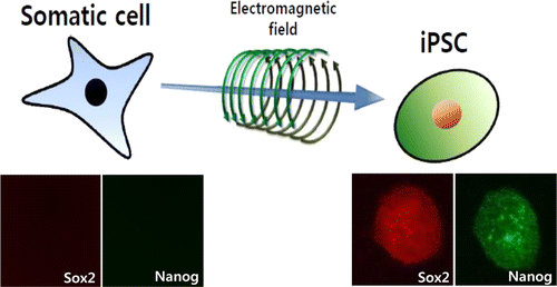동국대의 김종필 교수(교신저자), 한경대, 펜실바니아대 공동연구팀이 특정 낮은 전자기파(extremely low-frequency electromagnetic fields, EL-EMFs)를 쏘아 체세포(피부세포, Somatic cell)를 암세포 유발 없는 '역분화 줄기세포(iPSC)'로 재프로그램화 하는데 세계 최초로 성공했다(Baek et al., ACS Nano, 23 Sep 2014).세포 재프로그래밍은 세포의 운명을 자유자재로 전환해 환자에게 필요한 맞춤형 세포를 만들어낼 수 있는 기술로, 현재 줄기세포...