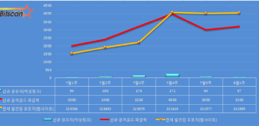 본격적인 휴가기간으로 악성코드 활동이 줄어든 반면 파급력은 더욱 커진 것으로 나타났다. 그 이유로 영향력 있는 사이트에 악성링크가 삽입되어 있기 때문이다.국내 보안업체 빛스캔(대표 문일준, www.bitscan.co.kr)이 자체 운영하는 PCDS1을 통해 탐지된 국내 180여만 개, 해외 30여만 개의 웹서비스들에 대한 분석 보고서 내용에 따르면 현재 한국인터넷 위협 수준은 ‘경고’ 상태이다.악성코드 주요...