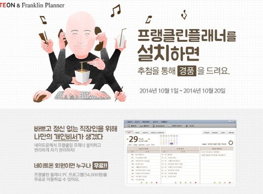 자기관리의 지존 ‘프랭클린플래너’가 네이트온 속으로 들어왔다.SK커뮤니케이션즈(대표 이한상)는 웹플랜과 손잡고 자사 메신저 네이트온을 통해 프랭클린플래너 서비스를 시작한다고 밝혔다.프랭클린플래너는 우선순위에 따른 효율적인 업무처리를 돕고 자신의 사명과 가치관, 장기목표 등을 체계적으로 이룰 수 있도록 관리할 수 있어 바쁜 현대인들이 구비해야 할 최적의 시간관리 도구 중 하나로 꼽힌다.이번 서비스를 통해 그 동안...