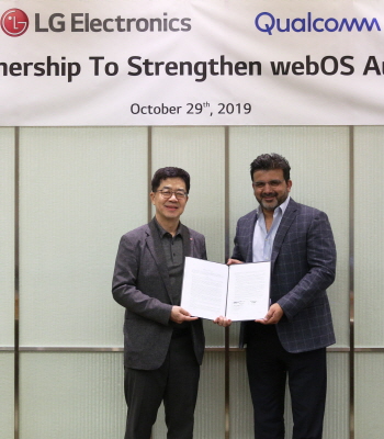 LG전자가 퀄컴과 차량용 인포테인먼트 플랫폼 ‘webOS Auto’를 개발한다.LG전자는 첨단 디지털 무선통신 기술, 제품 및 서비스의 세계적 선도기업인 퀄컴 테크날러지(Qualcomm Technologies Inc.)와 ‘webOS Auto(웹OS 오토)’ 개발을 위해 협력한다고 30일 밝혔다. webOS Auto는 커넥티드 카에 특화된 서비스를 제공하는 리눅스 기반의 차량용 인포테인먼트 플랫폼이다. LG전자와 퀄컴 테크날러지는 29일 서울 양재동에 위치한 LG전자 서초R&D캠퍼스에서 LG전자...