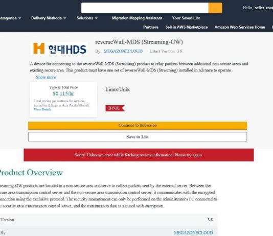 현대HDS가 아마존웹서비스(AWS) 마켓플레이스에 망연계솔루션(reversWall-MDS)을 등록, 서비스를 본격 시작한다고 7일 밝혔다.아마존웹서비스(이하 AWS)가 국내에 진출한 이후, 망연계솔루션 최초로 등록된 사례다.이번에 등록한 망연계솔루션은 시큐에버의 제품으로 메가존클라우드(대표이사 이주완)를 통해 등록했다.이번 AWS 마켓플레이스에 등록된 망연계솔루션은, BYOL(Bring Your Own License) 형태로 제공된다. AWS 이용자는 EC2 인스턴스에 AMI를 설치하고, 현대HDS로부터 서비스 및 구축 라이선스를 구입하면 된다....