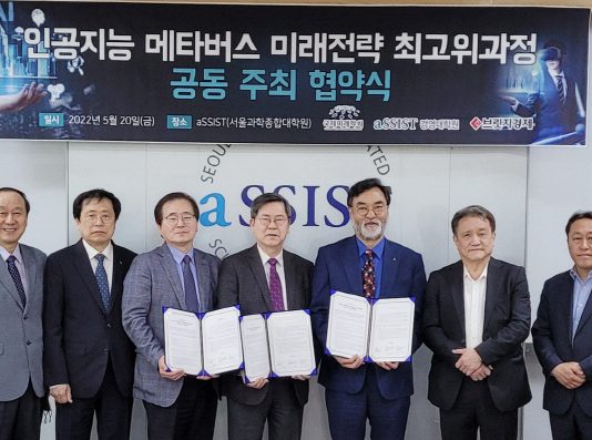 국내 최초로 ‘인공지능 메타버스 미래전략 최고위’ 과정이 개설됐다.대한민국 대표 미래기관인 국제미래학회와 국내 미래경영을 선도하고 있는 서울과학종합대학원 경영대학원, 브릿지경제가 5월 20일 서울과학종합대학원 회의실에서 협약식을 갖고 국내 최초로 ‘인공지능 메타버스 미래전략 최고위’ 과정을 8월 30일 개설키로 협약했다. 협약식에는 국제미래학회 안종배 회장과 서울과학종합대학원의 김태현 총장이 직접 협약을 체결하였으며 조동성 산업정책연구원 이사장과 브릿지경제의 조진래...