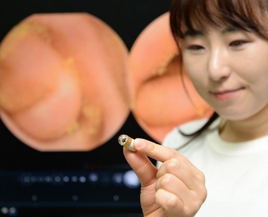 ▲ 인체통신기술을 활용, 사람의 소화기 질환 중 약 54%를 차지하는 식도와 위를 효과적으로 진단할 수 있는 캡슐내시경을 국내 업체와 함께 개발하는데 성공했다. 내시경 검사는 소화기관 속을 검사하는 가장 효과적인 수단이지만 검사할 때 고통이 잠이 들어도 깨도 힘들고 반복 사용으로 인한 교차감염 우려도 있다.이런 단점을 개선한 알약 크기의 캡슐 내시경이...
