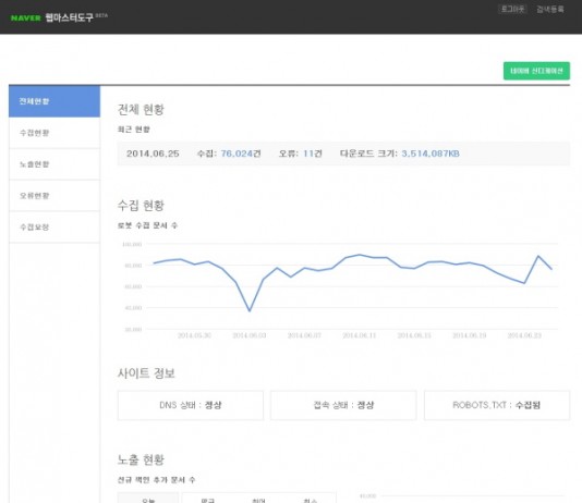 네이버가 ‘웹문서’ 검색 도구 ‘웹마스터 도구(http://webmastertool.naver.com)’ 베타 버전을 제공한다.네이버는 27일, 지난해 말 외부 웹페이지들이 네이버 및 다른 검색 웹로봇에 효과적으로 수집 및 노출되도록 ‘검색 잘되는 웹문서 만들기’라는 가이드라인(https://submit.naver.com/web.nhn?tab=1)을 공개한 바 있다. 이번에는 네이버 검색에서의 웹페이지의 수집 현황을 종합 관리할 수 있는 ‘웹마스터 도구’를 제공한다.네이버 ‘웹마스터 도구’는 특정 웹페이지...