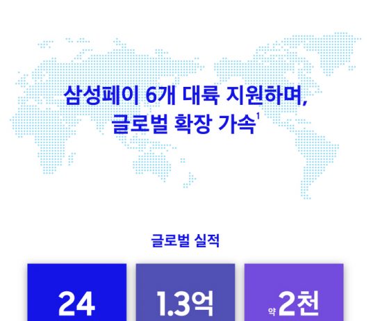 삼성전자의 모바일 간편결제 서비스 삼성페이가 아프리카에 진출했다. 삼성전자는 삼성페이 출시 3주년을 맞아 21일 남아프리카공화국에서 삼성페이 서비스를 시작했다고 22일 밝혔다. 이로써 삼성페이는 전세계 6대륙 24개 국가 및 시장으로 서비스를 확대하고, 글로벌 결제 건수 13억을 돌파했다.삼성페이는 전 시장에서 오프라인 결제를 지원하며 온라인 결제는 호주, 브라질, 스위스 등 15개 지역에서, 교통카드는 중국, 홍콩,...