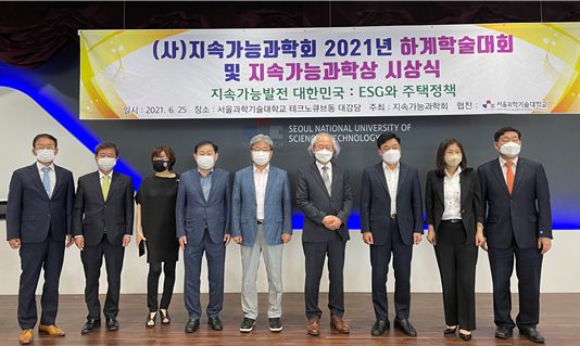 (사)지속가능과학회(회장 이영한 서울과학기술대학교 교수)는 6월 25일 서울과학기술대학교 테크노 큐브동 대강당에서 ‘지속가능발전 대한민국: ESG와 주택정책’을 주제로 2021년 하계학술발표대회 및 대한민국 지속가능과학상 시상식을 개최했다. 일반논문 33편과 학생논문 11편 총 44편의 논문이 발표되었으며, 유튜브 ‘지속가능발전TV’로 생중계됐다. 이날 행사는 이혜주 포상심사위원장(중앙대 명예교수)의 심사 경과보고에 이어 대한민국 지속가능과학상 대상 시상식이 열렸다.시상에서 산업부문에 정만기(한국자동차산업협회 회장, 전 산업통상자원부...
