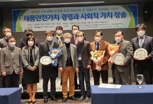 한국제품안전학회 추계 학술대회 및 제품안전경영대상 시상식이 개최됐다. 사단법인 한국제품안전학회는 11월 27일, 포포인츠 바이 쉐라톤 서울 구로 호텔에서 ‘제품안전가치경영과 사회적가치 창출’ 주제로 2020년 한국제품안전학회 추계학술대회 및 제품안전경영대상 시상식을 개최했다.이번 행사는 산업통상자원부 국가기술표준원, 한국제품안전관리원, KOTITI, 한국중부발전(주), (주)힐스엔지니어링, 시너스텍(주), 현대인프라코어(주), (주)구들 후원으로 열렸다.특히 코로나 시대 사회적 거리두기 2단계를 준수하기 위해 온라인과 오프라인을...