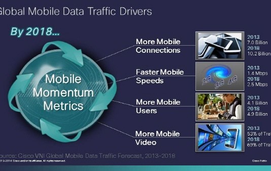시스코가 ‘2013-2018 시스코 비주얼 네트워킹 인덱스 글로벌 모바일 데이터 트래픽 전망 보고서(Cisco® Visual Networking Index Global Mobile Data Traffic Forecast for 2013 to 2018)’를 통해 전세계 모바일 데이터 트래픽이 향후 4년간 약 11배 증가해 2018년에는 연평균 190엑사바이트에 달할 것이라고 밝혔다.또 대한민국의 2018년 모바일 데이터 트래픽 총량은 7엑사바이트를 기록하며 전세계 수준과 같이 11배 성장할 것으로 내다봤다.*1엑사바이트는 100경 바이트 또는 10억 기가바이트의...