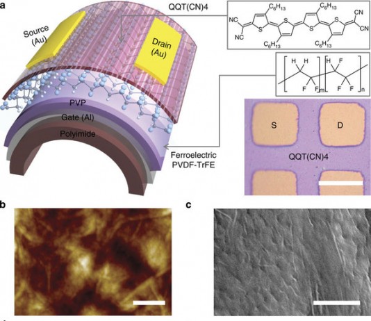 종이처럼 접을 수 있는 스마트 기기 시대가 성큼 다가올 것으로 보인다.국제공동 연구진이 소자의 유연성과 변형에 대한 저항을 극대화한 차세대 폴더블(foldable) 비휘발성 유기 메모리 소자를 개발했다.개발된 소자는 간단한 용액공정으로 제작가능하며, 종이처럼 접을 수 있어, 향후 웨어러블 컴퓨터 등의 디스플레이, 통신 및 저장 장치 소자 개발에 크게 기여할 것으로 보인다.연세대학교...