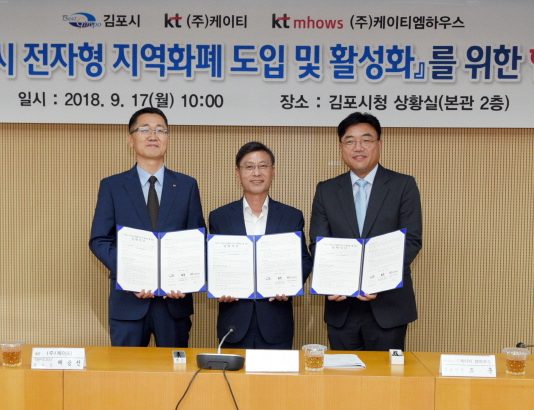 김포시가 전국 최초로 약100억원에 달하는 블록체인 기반 카드, 모바일 지역화폐를 도입한다. 발행·유통되는 지역화폐는 2019년 상반기 김포시 지역화폐 가맹점에서 현금처럼 이용될 수 있다. 김포시는 17일 시청 상황실에서 KT, KT 엠하우스와 ‘김포시 전자형 지역화폐 도입을 위한 MOU’를 체결했다고 밝혔다.이번 MOU는 김포시가 선도적으로 추진하고 있는 전자형 지역화폐 플랫폼의 성공적 구축을 위한 상호 협력의...