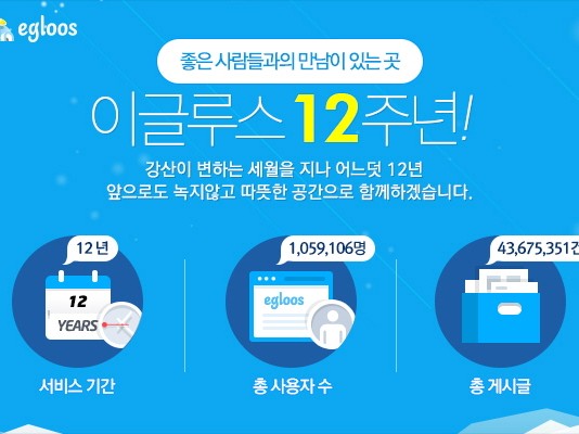 줌인터넷(사장 박수정)이 검색포털 줌닷컴을 통해 제공 중인 블로그 서비스 ‘이글루스(egloos)’가 서비스 오픈 12주년을 맞았다고 1일 밝혔다. 이글루스는 ‘좋은 사람들과의 만남이 있는 곳’을 모토로 2003년부터 서비스를 시작한 가입형 블로그 전문 서비스로서, 사용자가 손쉽게 꾸밀 수 있는 블로그 디자인, 운영자 블로그를 이용한 긴밀한 소통 등을 강점으로 꾸준한 인기를 누려왔다. 실제로 이글루스는 지난 12년의...