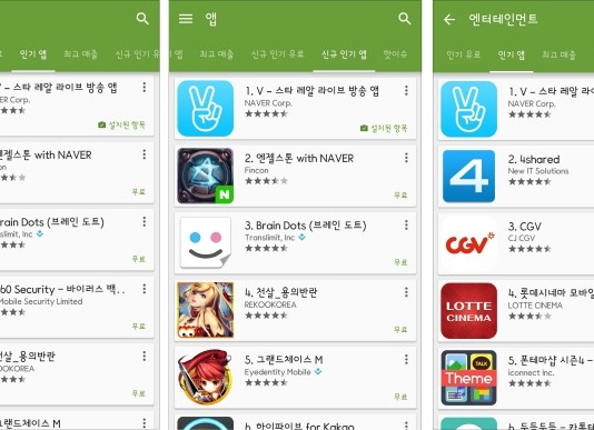 지난달 31일 네이버가 출시한 V앱 안드로이드 베타 버전이 출시와 동시에 전 세계 170개국에서 8월 1일 기준 다운로드 61만 건을 기록했다.출시 24시간 만에 구글플레이 인기앱, 신규인기앱, 엔터테인먼트 카테고리1위를 달성, 현재 인기앱 순위는 2위이다. V는 한국, 일본, 홍콩, 인도네시아, 말레이시아, 필리핀을 비롯한 아시아 국가뿐만 아니라 미국, 멕시코, 콜롬비아, 페루, 브라질 등 미주...
