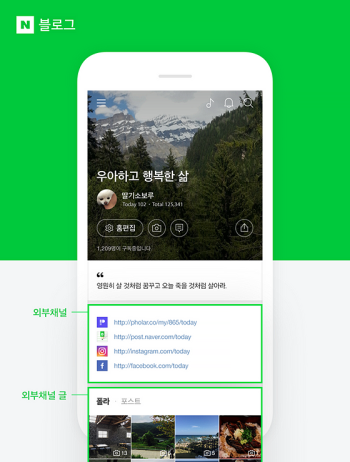 네이버 블로그가 개인 SNS 콘텐츠 허브로서의 기능을 더욱 강화했다. 이제 블로거들은 자신이 운영하는 다른 SNS들을 블로그 첫 화면에 모아서 보여줄 수 있게 됐다. 네이버는 서비스 개편을 통해, 블로거들이 운영 중인 ▲페이스북 ▲인스타그램 ▲트위터 ▲카카오톡 플러스친구 ▲네이버 스토어팜 ▲포스트 ▲폴라 등을 한번에 모아서 소개할 수 있는 공식 공간인 ‘외부채널 영역’을 첫...