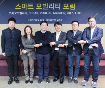 그린카, 럭시, 쏘카, e버스, 풀러스, 카카오모빌리티 6개사는 10월 30일, ‘스마트 모빌리티 포럼’ 을 창립했다고 밝혔다. 카카오 한남오피스에서 진행된 포럼 발족식에는 김좌일(그린카), 최바다(럭시), 조정열(쏘카), 한상우(e버스), 김태호(풀러스), 정주환(카카오모빌리티) 등 각사 대표와 관계자 들이 참석했다. 스마트 모빌리티 포럼은 차량 공유(쏘카, 그린카), 카풀(풀러스, 럭시), 수요응답형버스(e버스), 택시/자가용(카카오모빌리티) 등 다양한 모빌리티 분야의 선도 기업들이 한국 모빌리티 산업의...