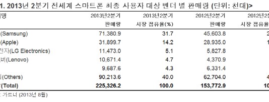 올해 2분기 스마트폰 판매량 46.5% 늘어, 처음으로 피처폰 판매량을 추월한 것으로 나타났다.가트너(Gartner, Inc.)에 따르면 2013년 2분기 최종 사용자 대상으로 한 휴대폰 판매대수는 총 4억 3,500만 대로 작년 동기 대비 3.6%가 늘어났다고 한다. 최종 사용자 대상으로 한 스마트폰 판매대수는 전년 동기 대비 46.5%가 늘어난 2억 2,500 만대를 기록했다. 한편,...