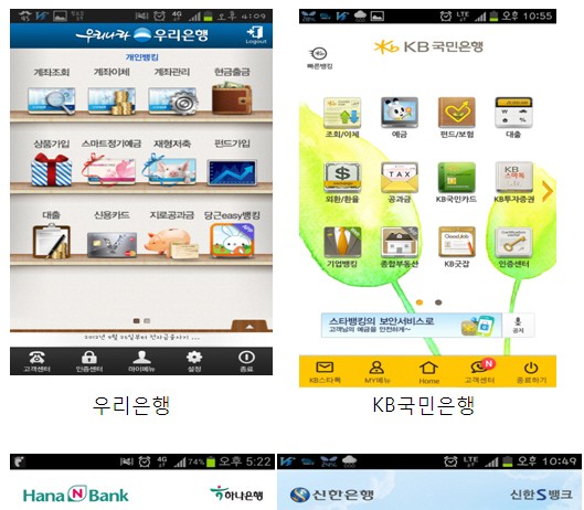 - 신한은행 종합 1위, 우리은행 하나은행 국민은행 2 3 4위 스마트폰을 이용한 모바일뱅킹(스마트뱅킹) 사용자가 빠르게 늘고 있는 가운데 10개 주요은행과 6개 지방은행 등 16개 은행의 스마트뱅킹 애플리케이션(앱)을 종합 평가한 결과가 나왔다.고객흡인력(고객유인성), 비즈니스(서비스), 콘텐츠, 디자인, 기술성 등 5개 분야별로 평가한 결과, 신한은행이 종합 1위를 했으며 우리은행 하나은행 국민은행 각각 2, 3,...