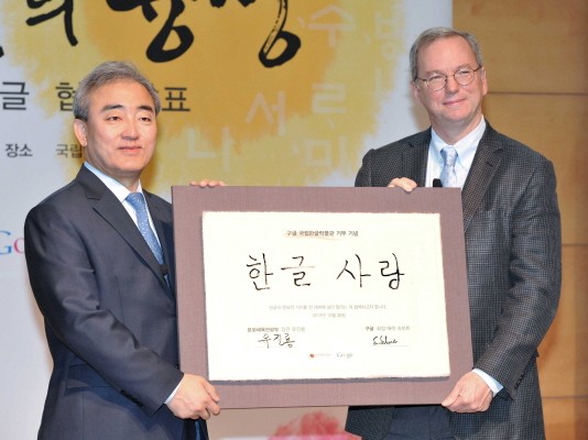 구글이 한글을 비롯한 한국문화 콘텐츠 육성과 홍보에 적극 나선다. 문화체육관광부와 구글코리아(www.google.co.kr)는 10월 30일 용산구 국립한글박물관에서 문체부 유진룡 장관, 에릭 슈미트 구글 회장 등이 참석한 가운데 세계 속 한국문화의 융성을 위한 협력 확대 방안을 발표했다.양 기관의 협력 확대 내용은 ▲국립한글박물관의 한글 체험 및 교육 콘텐츠 제작 지원 ▲구글 문화연구원(Google Cultural...