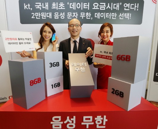 KT가 업계 최초로 요금제와 상관없이 음성 통화와 문자는 무한 제공하고 데이터 이용량에 따라 요금을 선택할 수 있는 파격적인 요금제를 선보였다.KT(회장 황창규, www.kt.com)는 7일 광화문 West 사옥에서 열린 기자간담회에서 국내 최초로 2만원 대의 최저 요금으로 음성 통화를 무한으로 이용 가능한 ‘데이터 선택 요금제’를 8일 출시한다고 밝혔다.이는 2004년 월 10만원에 음성통화를...