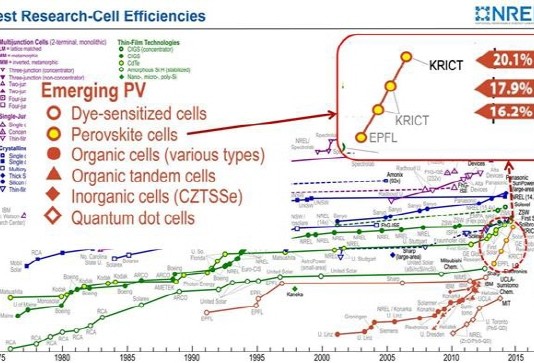 국내 연구진이 페로브스카이트 태양전지의 효율을 세계 최초로 20.1%까지 끌어올리는 새로운 공정기술을 개발했다. 페로브스카이트 태양전지는 기존 실리콘 태양전지보다 제조 단가가 저렴해 각광받고 있는 차세대 태양전지다. 미래창조과학부는 한국화학연구원 석상일 박사(성균관대학교 에너지과학과 교수 겸직)가 주도하고 양운석 박사과정, 노준홍 박사가 공동 제1저자로 참여한 태양전지 연구 결과가 국제학술지 사이언스 21일자 익스프레스판에 게재됐으며, 향후 사이언스...
