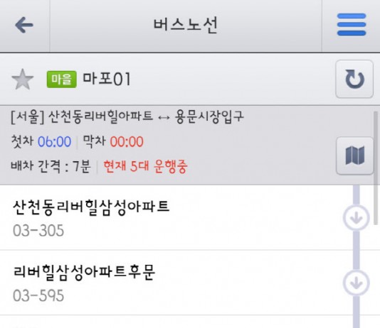 다음 지도에서 서울시 마을버스 실시간 정보를 서비스한다. 현재 국내 지도 서비스 중 마을버스 도착 예정 정보를 제공하는 것은 다음 지도가 유일하다.다음 지도에서는 서울시를 비롯한 13개 지방자치단체의 실시간 버스 도착 정보를 서비스 중이다. 다음카카오는 이에 더해 한국스마트카드와 업무 제휴를 맺고, 서울 지역을 우선으로 다음 지도의 실시간 정보 영역을 마을버스까지 확대했다....