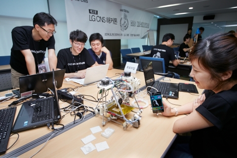 LG CNS가 ‘도전과 실험 정신’을 주제로 ‘LG CNS 해커톤’을 개최했다.이번 해커톤은 회사의 신사업 아이디어와 미래사업 발굴을 위해 세 개의 트랙으로 나뉘어 개최됐다. 앱, 웹, 유틸리티 등 워킹 소프트웨어 구현을 주제로 한 ‘컨버전스 트랙’, 프로그래밍 실력을 겨루는 ‘알고리즘 트랙’, 오픈 하드웨어 플랫폼을 이용한 프로토 타이프 구현이 과제인 ‘디바이스 트랙’...
