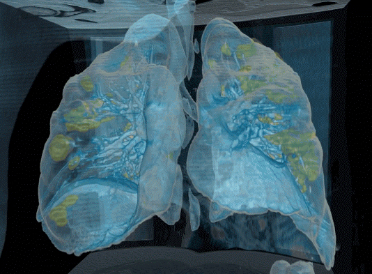 전 세계를 공포의 도가니로 몰아넣고 있는 코로나19(COVID-19)에 감염된 중증으로 가는 환자의 폐를 실제 데이터에서 3D CG로 만들어 VR로 볼 수 있는 모델 영상을 소개한다. 미국 조지워싱턴대학(GWU, The George Washington University) 부속병원이 발표한 코로나19에 감염된 중증 환자 폐의 VR 모델은 환자의 CT 스캔 등 실제 데이터를 바탕으로 만들어졌다. 환자의 반투명한 파란색 부분이...