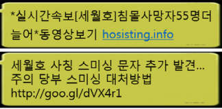 ‘세월호 침몰사고’ 사칭 스미싱 기승